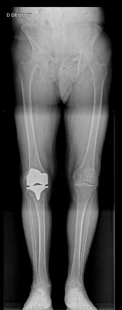 La cause la plus fréquente menant à une prothèse de genou est l’arthrose, dont les symptômes caractéristiques se retrouvent chez les patients concernés. Le genou atteint présente des douleurs articulaires déclenchées et aggravées par la marche ou la position debout prolongée. Ces douleurs siègent typiquement à l’intérieur ou à l’avant du genou, et peuvent irradier vers le mollet. Elles sont soulagées par le repos au début, mais à un stade avancé elles peuvent persister même la nuit. On observe également une raideur et une perte de mobilité du genou : le patient a du mal à plier ou tendre complètement la jambe, surtout le matin ou après une longue immobilisation. Marcher sur de longues distances, monter ou descendre des escaliers devient de plus en plus difficile. Il peut y avoir des épisodes d’épanchement (gonflement du genou par accumulation de liquide) après des efforts, signe d’inflammation. Parfois, le genou arthrosique se déforme progressivement en prenant un aspect « arque » vers l’extérieur (genu varum) ou vers l’intérieur (genu valgum). Au fil du temps, l’instabilité et la douleur peuvent imposer l’usage d’une canne.