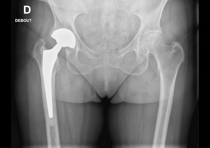 - Descellement à long terme – Après plusieurs années (souvent au-delà de 15 à 20 ans), il est possible que la prothèse s’use ou se desserre progressivement dans l’os (descellement). Cela peut provoquer le retour de douleurs. Si la prothèse ne reste plus correctement fixée, une reprise de prothèse (c’est-à-dire un remplacement par une nouvelle prothèse) pourra être envisagée. Ce risque dépend de l’usure des matériaux et de l’activité du patient, mais les prothèses modernes ont une longue durée de vie dans la majorité des cas.