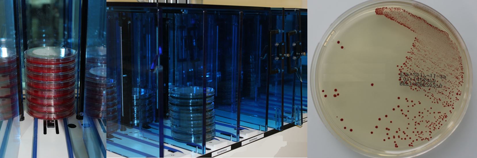 Les analyses bactériologiques sont réalisées sur tout type de prélèvements et prises en charge de manière continue. La mise en culture est automatisée pour la majorité des prélèvements sur un ensemenceur automatique de géloses (InoqulA, BD). Des colorateurs automatisés de lames sont utilisés (Colorations Gram et MGG – Aerospray – Elitech). Les cytologies urinaires sont réalisées sur l’automate UF-4000 (Sysmex).